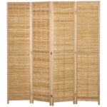 4-delt foldeskærm, rumdeler, 160 x 170 cm skillevæg, foldbar privatlivsskærm, rumdeler lavet af bambus, privatlivsskærm til stue, soveværelse, naturlig