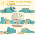 AIYAPLAY babybyggeklodserne, der er lavet af syntetisk læder og EPE-skum, skaber en blød, beskyttende overflade til sart hud. De fem moduler – bue, halvcirkel, rampe, hældning og trin – fremmer kreativitet og motorisk udvikling. Forvandl dit hjem til et fantasifuldt og sikkert legeområde med dette fleksible sæt af bløde byggeklodser.