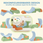Med dette sæt skumklodser kan dit barn bygge sikre og bløde slotte eller tunneler. Dette sæt med bløde byggeklodser opfordrer til kravling, klatring og balance, styrker koordination og selvtillid under leg og inspirerer til kreative ideer.