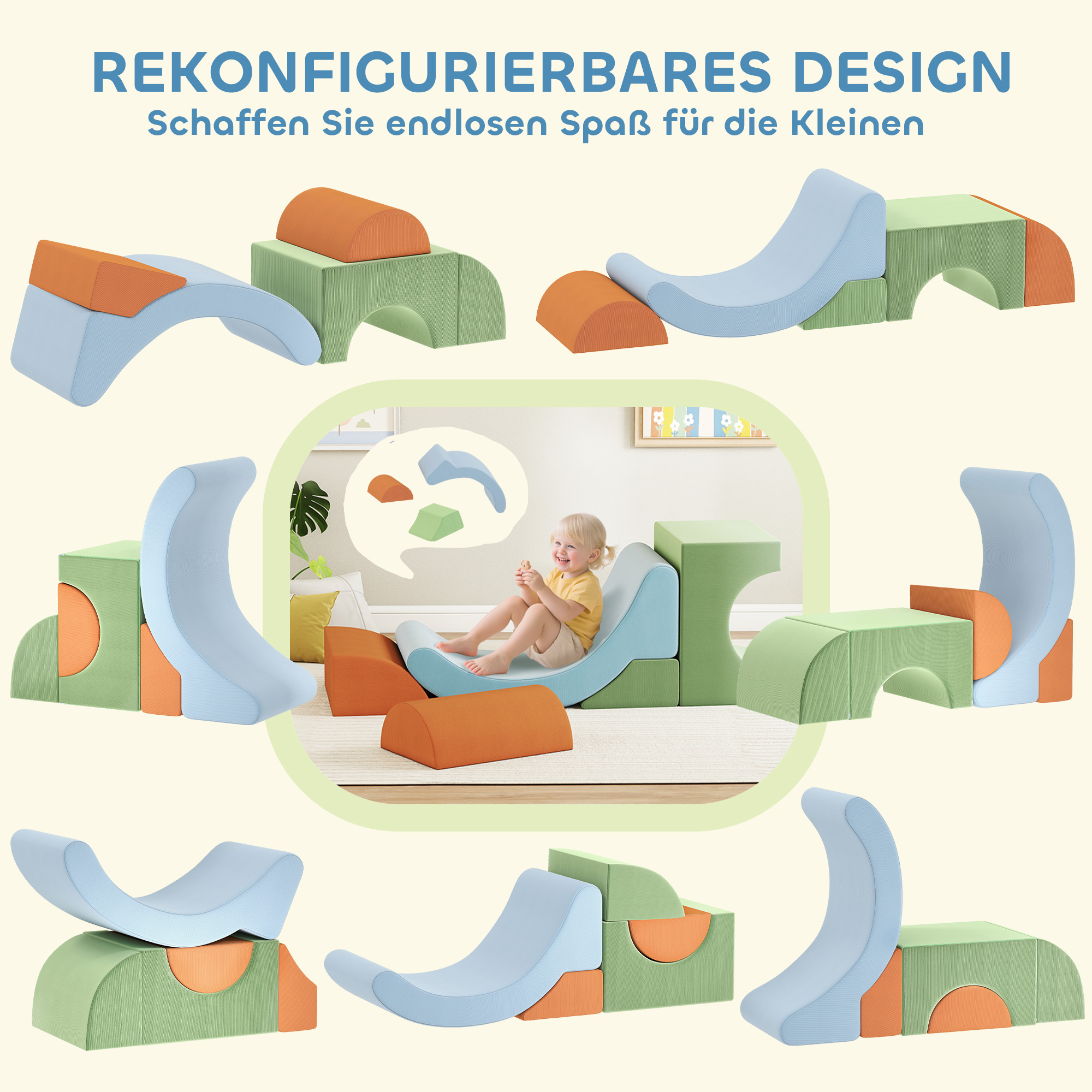 - ✔ Blødt corduroy-betræk og højdensitetsskum i de store byggeklodser giver skånsom og sikker komfort