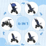 6-i-1 trehjulet cykel med skubbehåndtag, børnetrehjulet cykel med aftagelig solskærm, hynde, løbecykel med 5-punktssele, kurv, kopholder, til 1-5 år gamle børn, mørkeblå