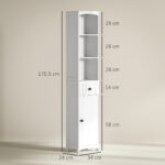 Badeværelsesskab Højt skab med 3 hylder, 1 skuffe Badeværelsesskab Badeværelseshylde Badeværelsesskab Badeværelsesmøbler, hvid, 34x24x170,5cm