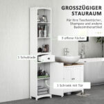 - Alsidig opbevaringsløsning: 1 lukket skab, 1 skuffe og 3 hylder giver masser af plads til dit badeværelsestilbehør. Dette skab gør det nemt at opbevare håndklæder, kosmetik og hygiejneprodukter på ét sted.
