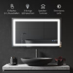 Badeværelsesspejl med LED-belysning, 100x60cm, vandtæt IP44, touch-afbryder, 3 lysfarver til moderne badeværelser