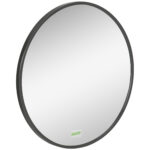 Badeværelsesspejl, rundt spejl, badeværelsesspejl med aluminiumsramme, Ø50 cm vægspejl til stue, soveværelse, badeværelse, IP44, sort