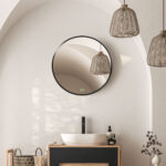 - Rundt badeværelsesspejl: Dette elegante vægspejl med sin glatte overflade får dit badeværelse til at se større og lysere ud, samtidig med at du hurtigt kan tjekke din frisure eller makeup. Takket være det stilfulde design og funktionalitet er dette spejl et must-have for alle, der værdsætter praktisk æstetik.