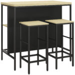 - Holdbare materialer: Med en malet stålramme og melaminbelagt spånplade kombinerer dette barbord med barstolsæt stil og holdbarhed til hverdagsbrug.