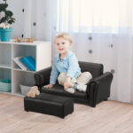 Børnelænestol med fodskammel, Børnesofa & Skammelsæt i sort, Komfortabel Børnesofa 83x42x41cm