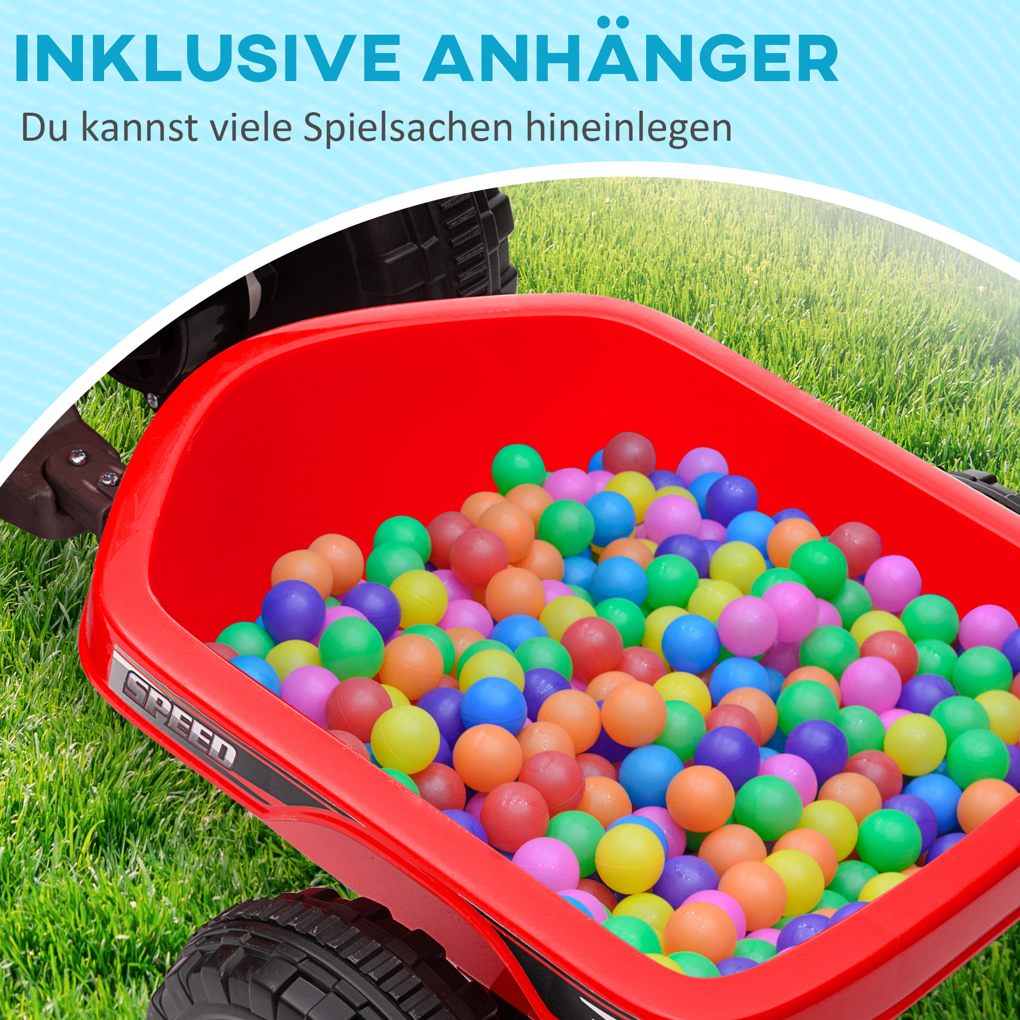 - Ægte køreglæde: Med en sikker hastighed på 2,5 km/t (behageligt gangtempo), én pedal og frem- og bakgear tilbyder denne børne-quad en autentisk køreoplevelse som en rigtig quad!