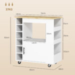 Oplev charmen ved HOMCOM køkkenvognen, som kombinerer elegance og funktionalitet. Med et blødt lukkende skab og et rummeligt åbent rum tilbyder denne opbevaringsvogn rigelig opbevaringsplads. Seks vinreoler og et fleksibelt opbevaringssystem i 3 niveauer gør den ideel til både sociale lejligheder og hverdagsbrug.