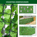 Den lysegrønne skærm fra Outsunny er imponerende hele vejen igennem. Nem at installere, ukompliceret at vedligeholde og fleksibel at installere. Det tætte løv er modelleret efter ahorntræets. Den dybt fligede struktur er lavet af UV- og vejrbestandig plast og beskytter pålideligt mod nysgerrige øjne. Der er mange installationsmuligheder, hvad enten det er på din egen altan, terrasse eller som en tilføjelse til dit havehegn. Design dit udendørsområde individuelt og nemt.