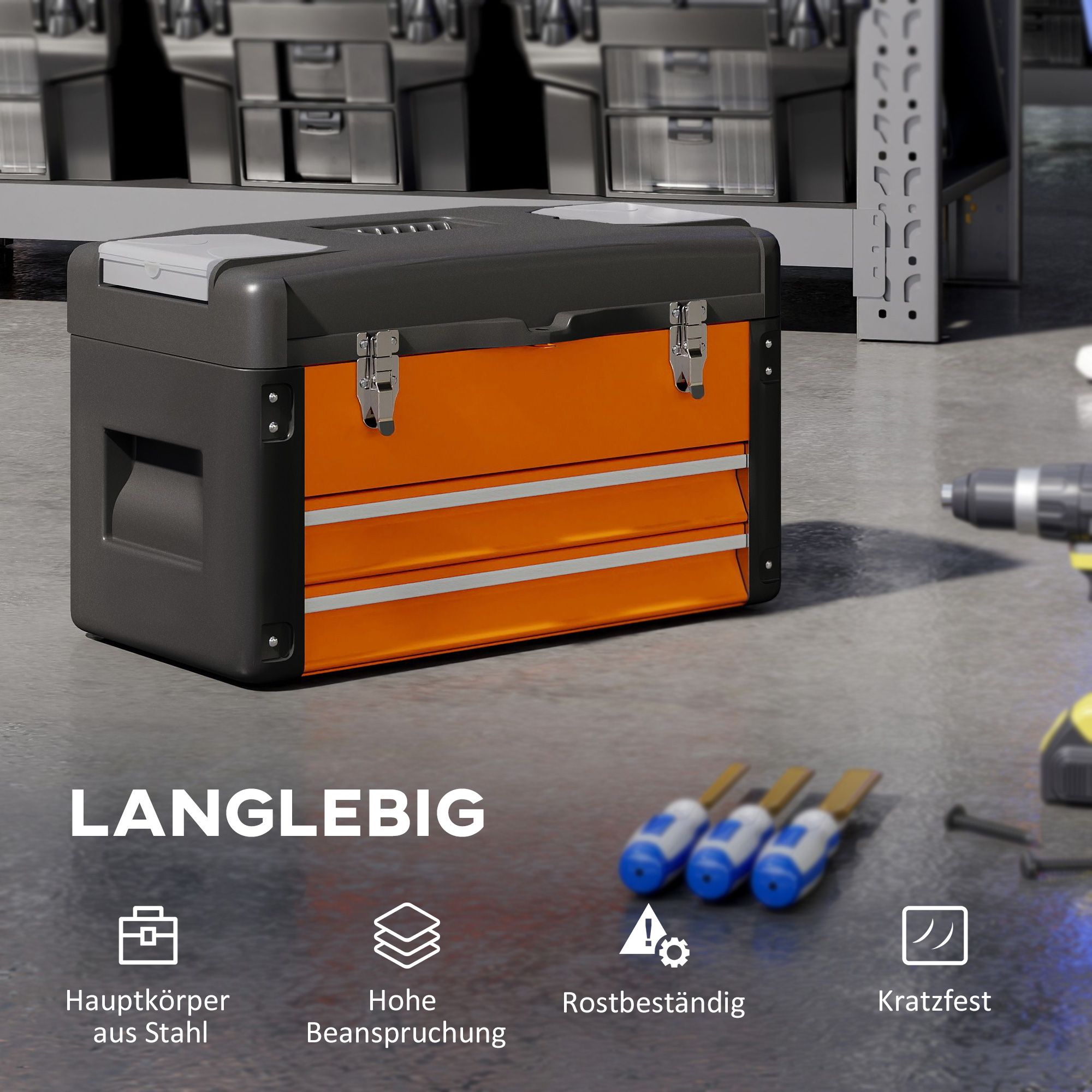 - ✔ Værktøjskassen er velegnet til brug i garagen, værkstedet og hobbyrummet