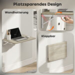 - Pålidelig støtte: Trods sin lette vægt kan dette vægbord bære op til 8 kg. Dens robuste konstruktion af spånplade og metal sikrer langvarig sikkerhed og ro i sindet.