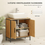 Vaskeskab med 2 døre og justerbar hylde, 60x30x60 cm badeværelsesskab med stålramme, til vaske uden bund, eg